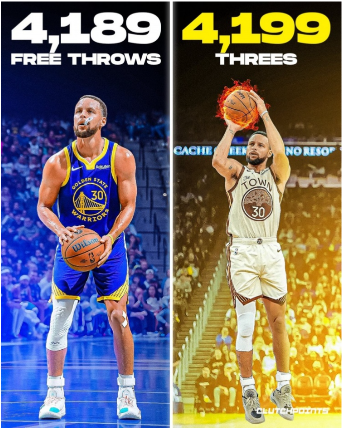 相比之下,库里的罚球虽稳,但受限于“非核心得分手段”的定位,其场均罚球出手仅5-6次(巅峰期因突破增多升至7-8次),远低于其三分出手(巅峰期场均11-12次),产量自然难以追上。